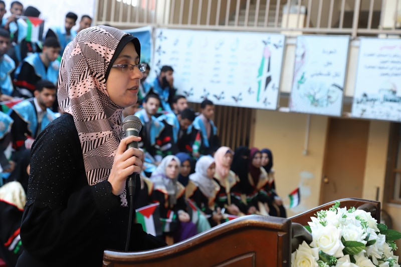 وفي كلمة المحتفى بهم أشادت المكرمة المتفوقة رؤى عزام الأسطل أشادت بجهود الشباب في إنجاح الحفل، وأكدت على جهود الوالدين في تذليل الصعاب لأبنائهم، داعية من أراد الرقي والتقدم بالاهتمام بالعلم والصبر عليه.