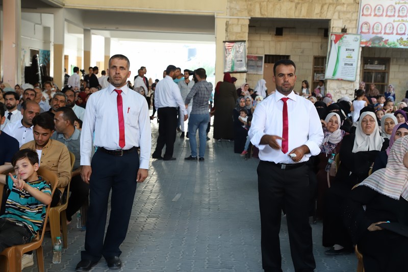 وقد دق العريف المتألق أ. مهند الأسطل جرس الحفل في الدقيقة الثلاثين بعد الخامسة عصراً مرحباً بالحضور بأسمائهم وصفاتهم الاعتبارية، مفتتحاً الاحتفال بتلاوة عطرة للقرآن الكريم مع الشيخ عبدالقادر يوسف الأسطل تلا ذلك طلة بهية للمكرمين يقدمهم الفرقة الكشفية وسط تصفيق الجماهير، تم على إثرها أداء السلام الوطني الفلسطيني.