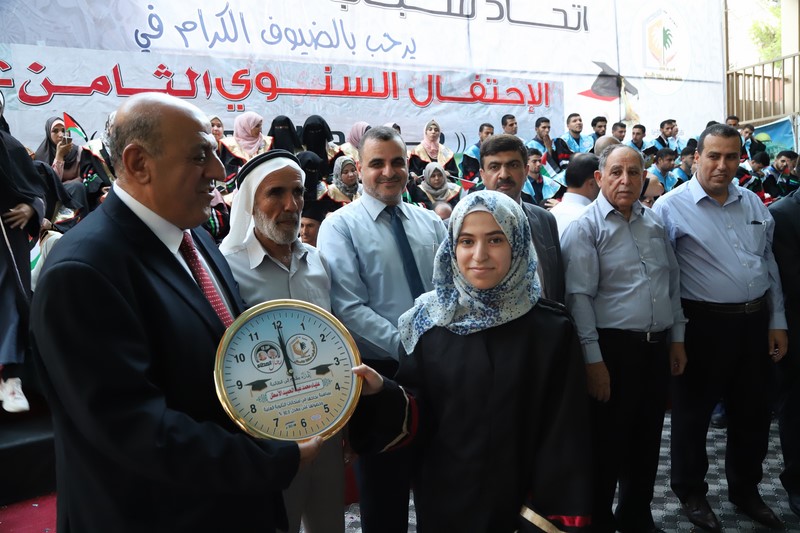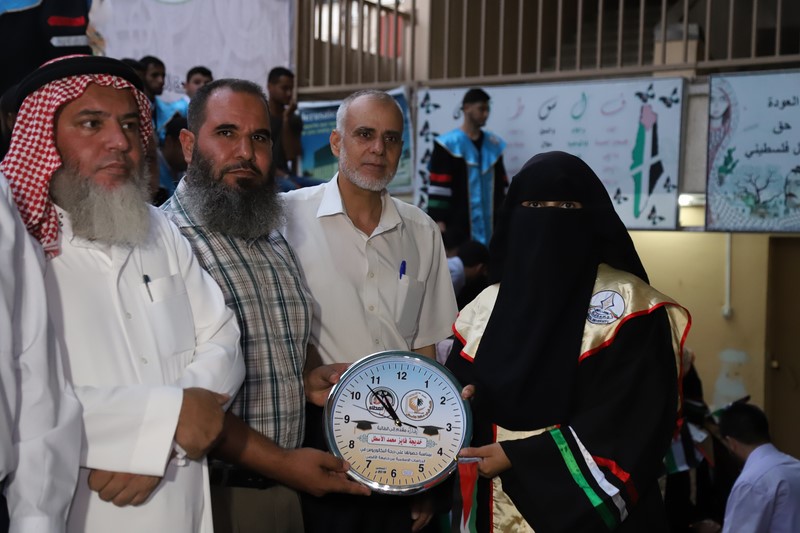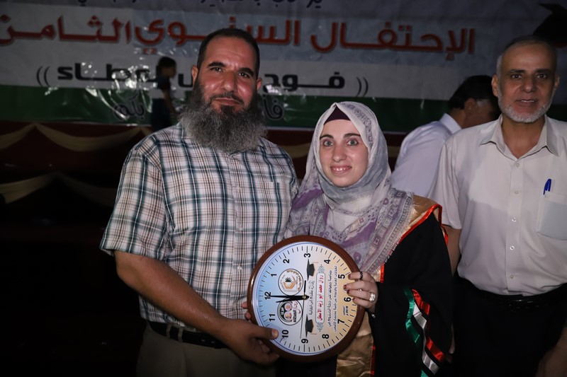 وفي كلمة المحتفى بهم أشادت المكرمة المتفوقة رؤى عزام الأسطل أشادت بجهود الشباب في إنجاح الحفل، وأكدت على جهود الوالدين في تذليل الصعاب لأبنائهم، داعية من أراد الرقي والتقدم بالاهتمام بالعلم والصبر عليه.