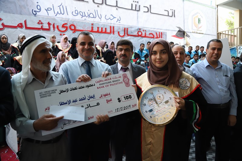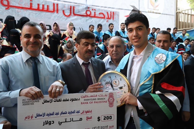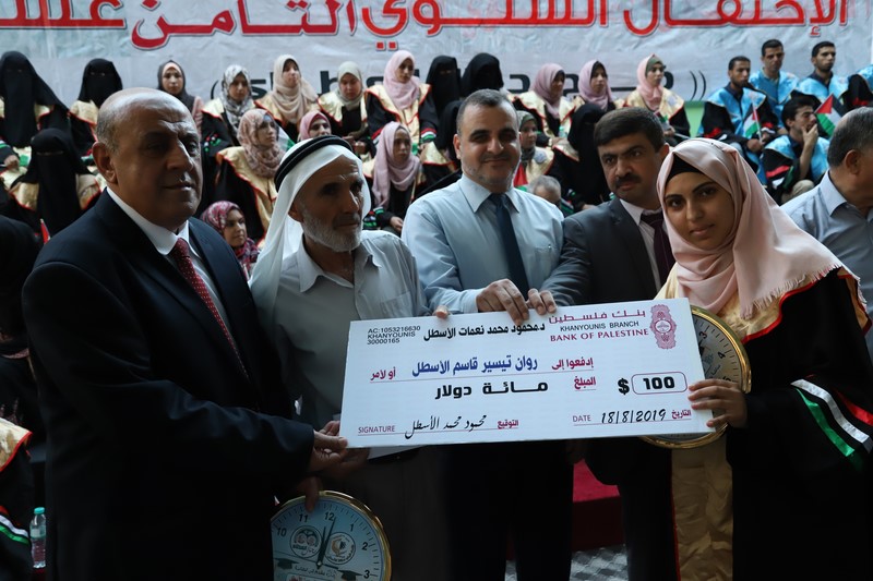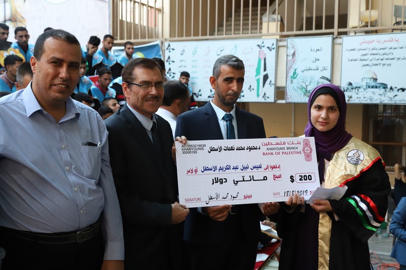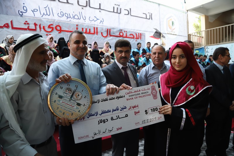 خان يونس- مدرسة حيفا / في حفل جماهيري مهيب وبحضور لفيف كبير من الأكاديميين والمدراء والوجهاء والأعيان تقدمهم الوكيل المساعد بوزارة التربية والتعليم د. أيمن اليازوري ورئيسا بلدية خان يونس والقرارة م. علاء الدين البطة وأ. إسماعيل الأسطل قام اتحاد شباب عائلة الأسطل بتكريم ثلة مباركة من أبناء العائلة من حملة الشهادات العليا والمتوسطة والمتفوقين في الثانوية العامة، وذلك ضمن فعاليات الاحتفال السنوي الثامن عشر للعائلة والذي يقيمه الاتحاد كل عام.
