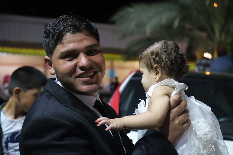 خانيونس/ الربوات الغربية : تم بحمد الله تعالى زواج السيد الفاضل : عبدالكريم موسى على "طراف" الأسطل، على صاحبة الصون والعفاف أميرة عبدالحميد أحمد العقاد.