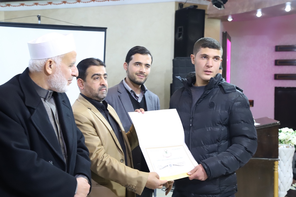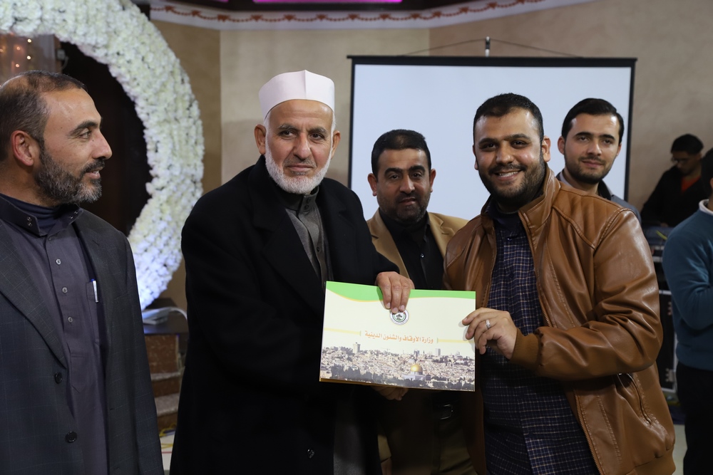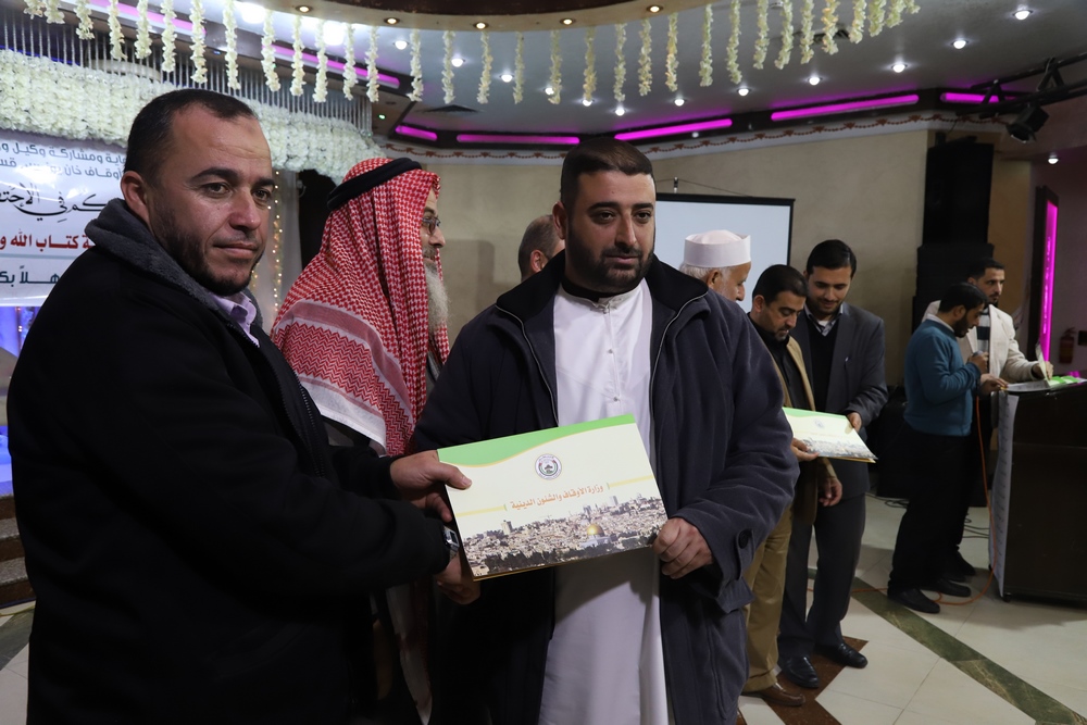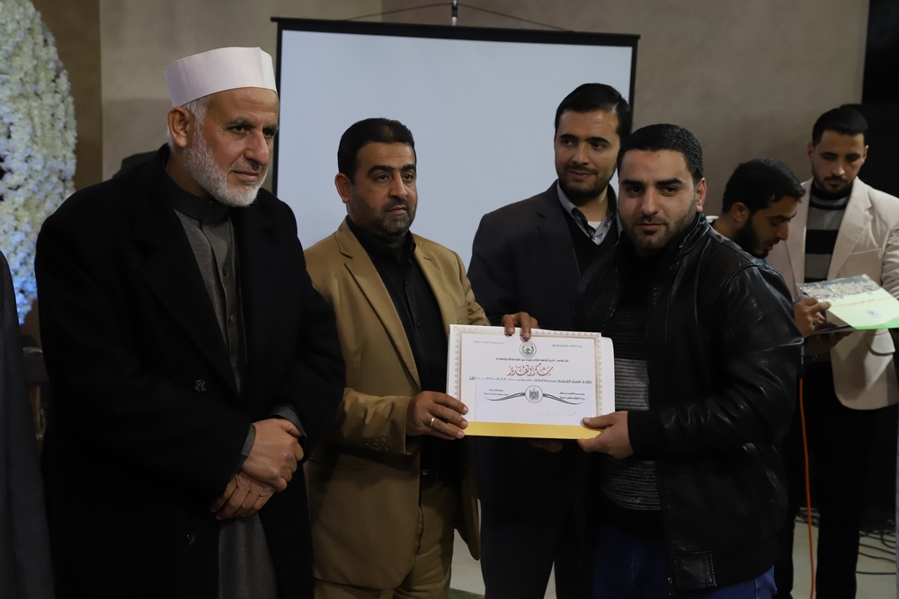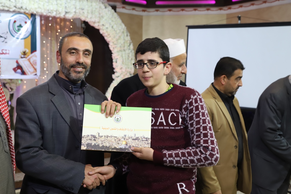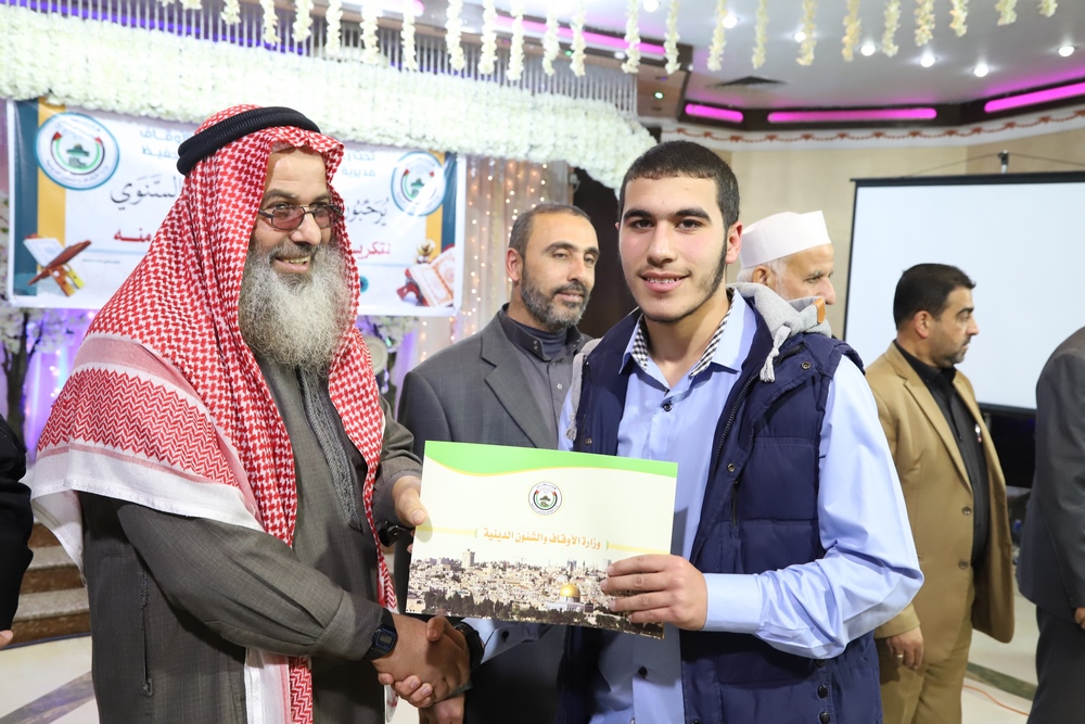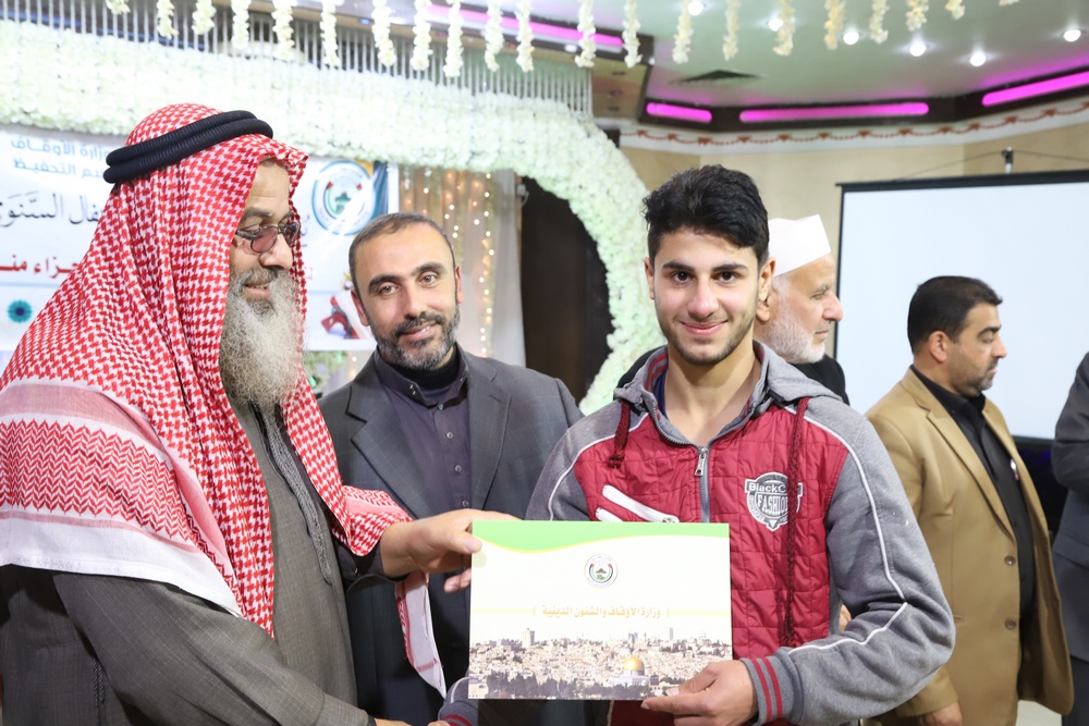 عقد قسم التحفيظ بمديرية أوقاف خانيونس احتفالاً لتكريم المحفظين المميزين وحفظة كتاب الله بحضور النائب في المجلس التشريعي الشيخ الدكتور يونس الأسطل ووكيل وزارة الأوقاف الدكتور عبد الهادي الأغا ومدير عام التحفيظ الأستاذ مازن النجار أبو مالك ومدير أوقاف خانيونس الدكتور محمد صالح الغلبان ورئيس قسم التحفيظ الشيخ عبد الباسط الأسطل وموظفي المديرية ولفيف من المواطنين..