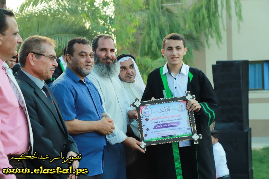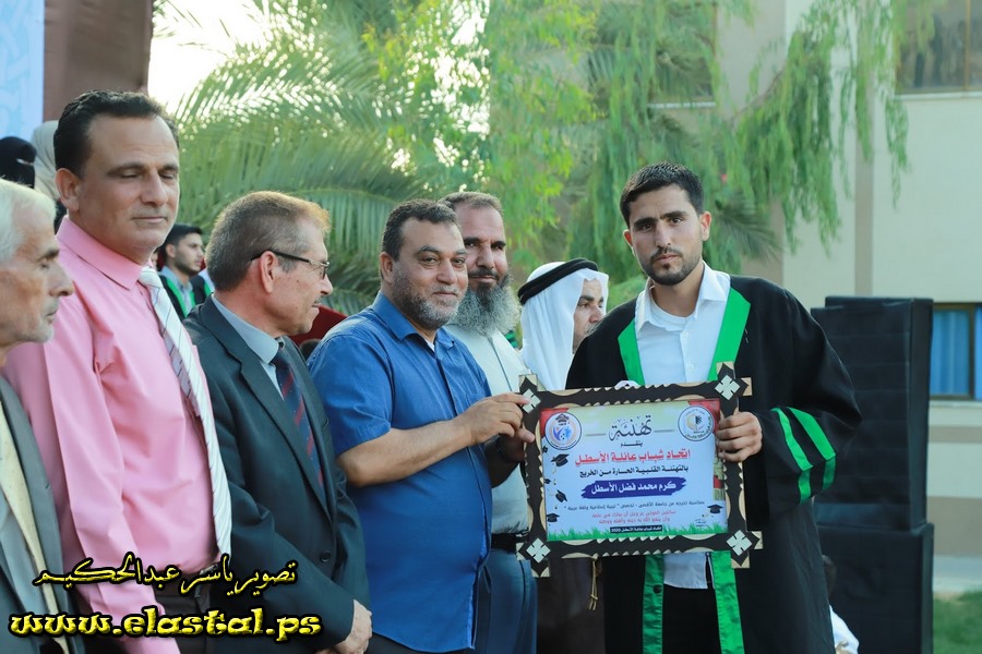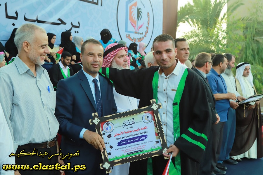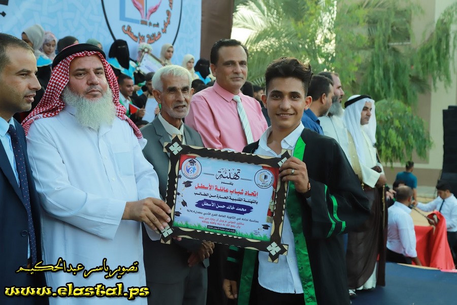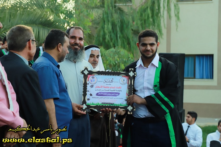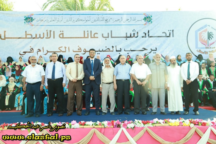 خان يونس- جامعة غزة / في حفل جماهيري مهيب وبحضور لفيف كبير من الأكاديميين والمدراء والوجهاء والأعيان تقدمهم د. يوسف أبو الريش وكيل وزارة الصحة، وعضو لجنة المتابعة الحكومية العليا ورئيس بلدية خان يونس م. علاء الدين البطة قام اتحاد شباب عائلة الأسطل بتكريم ثلة مباركة من أبناء العائلة من حملة الشهادات العليا والمتوسطة والمتفوقين في الثانوية العامة، وذلك ضمن فعاليات الاحتفال السنوي التاسع عشر للعائلة والذي يقيمه الاتحاد كل عام.
