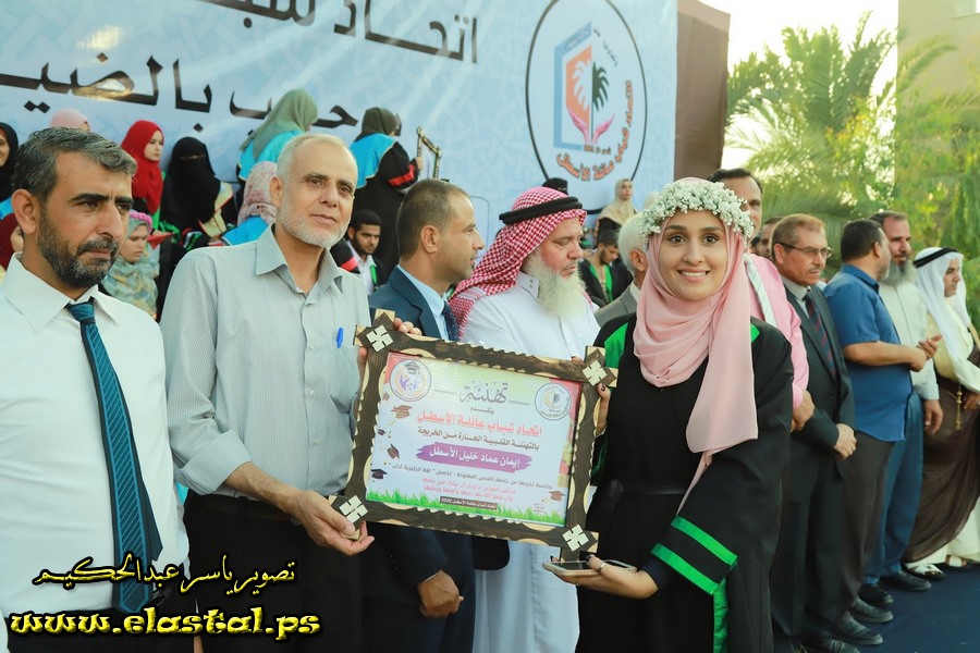 خان يونس- جامعة غزة / في حفل جماهيري مهيب وبحضور لفيف كبير من الأكاديميين والمدراء والوجهاء والأعيان تقدمهم د. يوسف أبو الريش وكيل وزارة الصحة، وعضو لجنة المتابعة الحكومية العليا ورئيس بلدية خان يونس م. علاء الدين البطة قام اتحاد شباب عائلة الأسطل بتكريم ثلة مباركة من أبناء العائلة من حملة الشهادات العليا والمتوسطة والمتفوقين في الثانوية العامة، وذلك ضمن فعاليات الاحتفال السنوي التاسع عشر للعائلة والذي يقيمه الاتحاد كل عام.