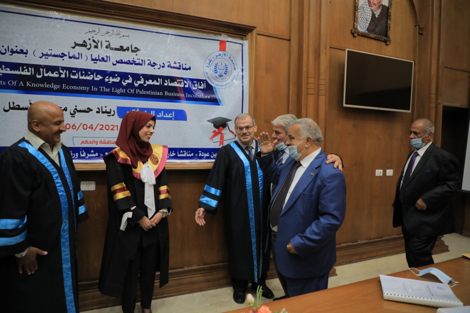 غزة / جامعة الازهر - حصل الباحثة : ريناد حسني محمد "زارع" الاسطل على درجة الماجستير في الاقتصاد من جامعة الازهر بتقدير امتياز والاولى على الدفعة ..