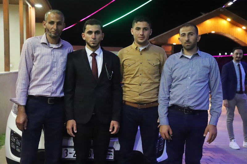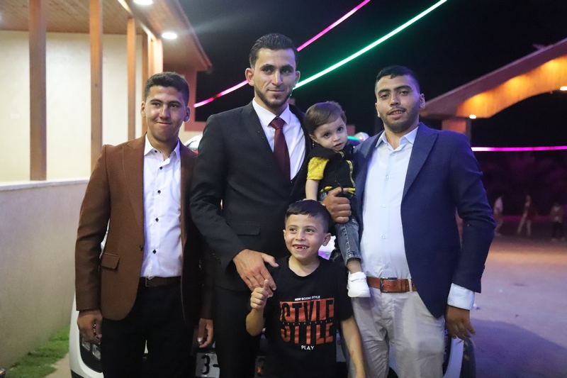 خان يونس/ السطر الشرقي : تم بحمد الله تعالى زواج السيد الفاضل : عبدالله عثمان علي "دعبس" الأسطل، على صاحبة الصون والعفاف الآنسة : ولاء نبيل الفرا