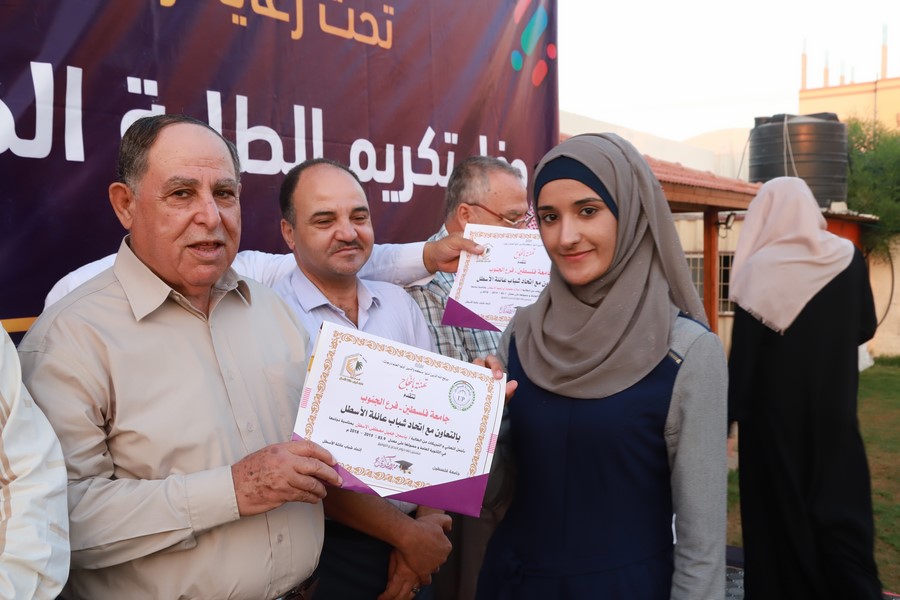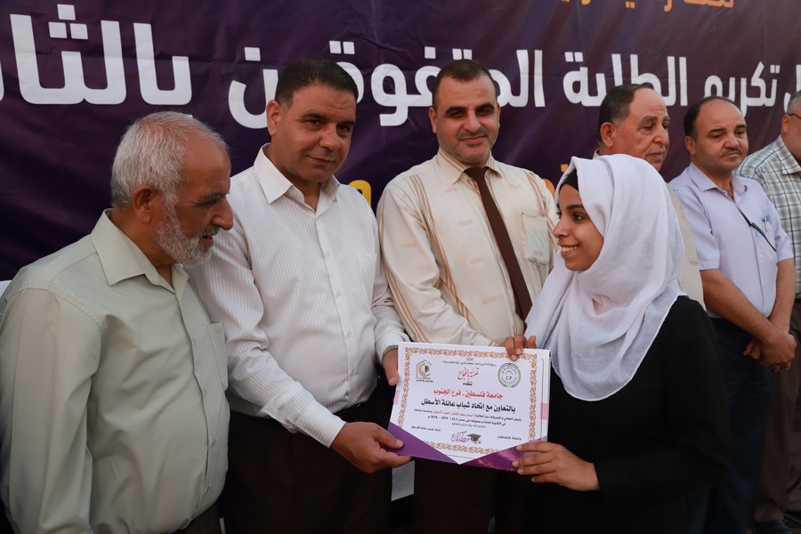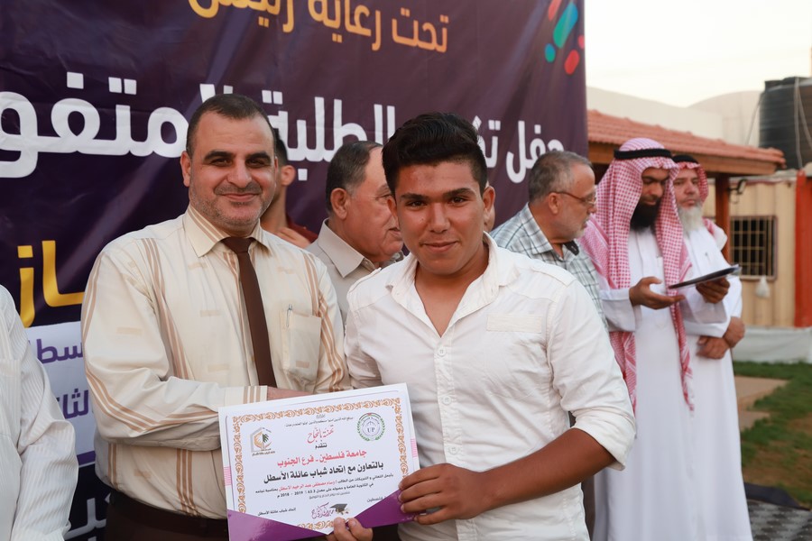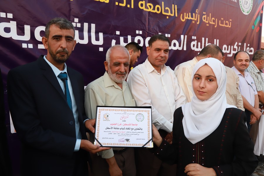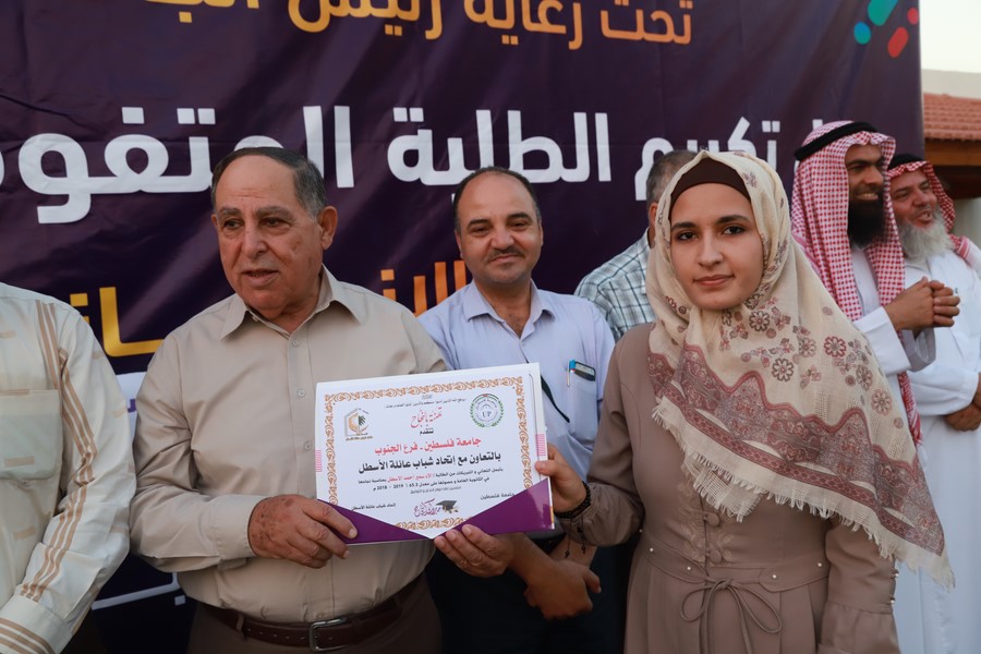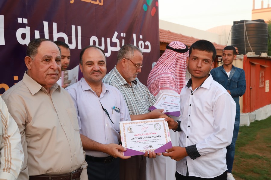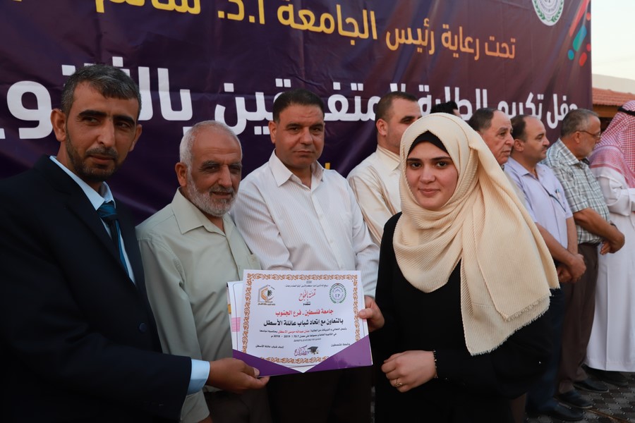 خانيونس- السطر الشرقي/ بحضور لفيف من الأعيان والوجهاء والشخصيات الاعتبارية نظم اتحاد شباب عائلة الأسطل بالتعاون مع جامعة فلسطين حفلاً مهيباً لتكريم المتفوقين والناجحين في الثانوية العامة للعام 2019 وقد بدأ الحفل بآيات من القرآن الكريم تلاها القارئ أيمن محمد الأسطل، ثم تللا ذلك فقرة دخول المكرمين إلى منصة التكريم، وقام الجميع للسلام الوطني الفلسطيني