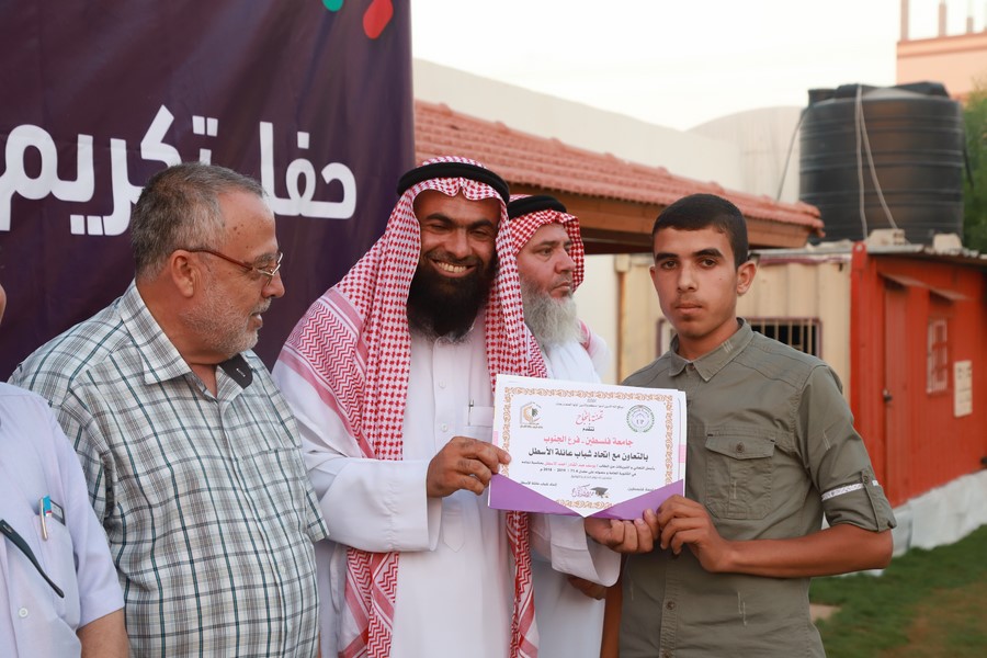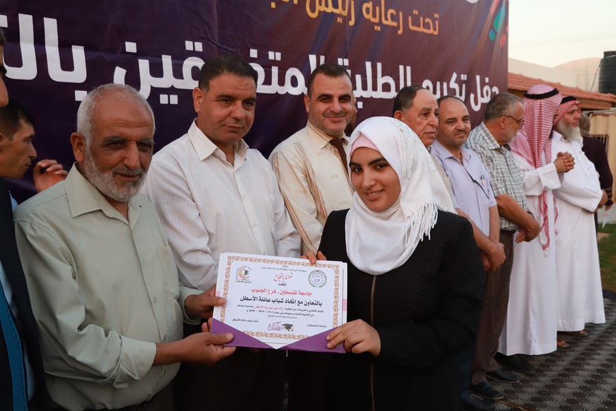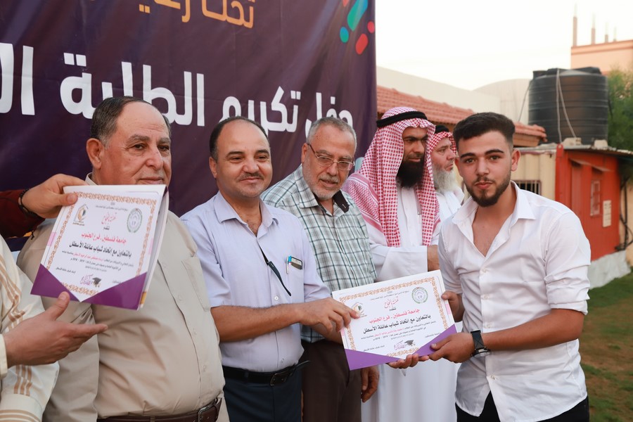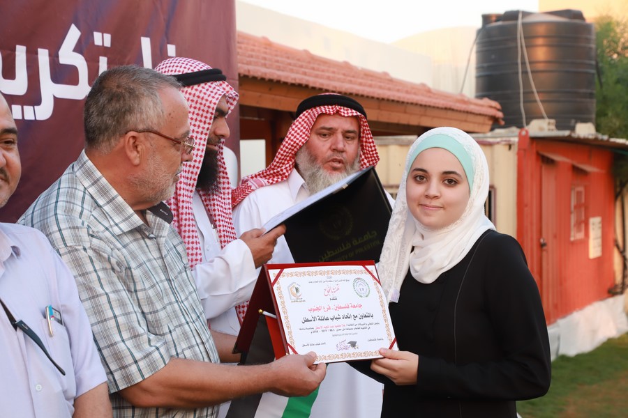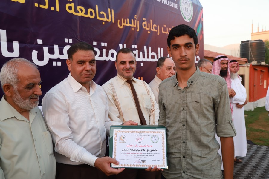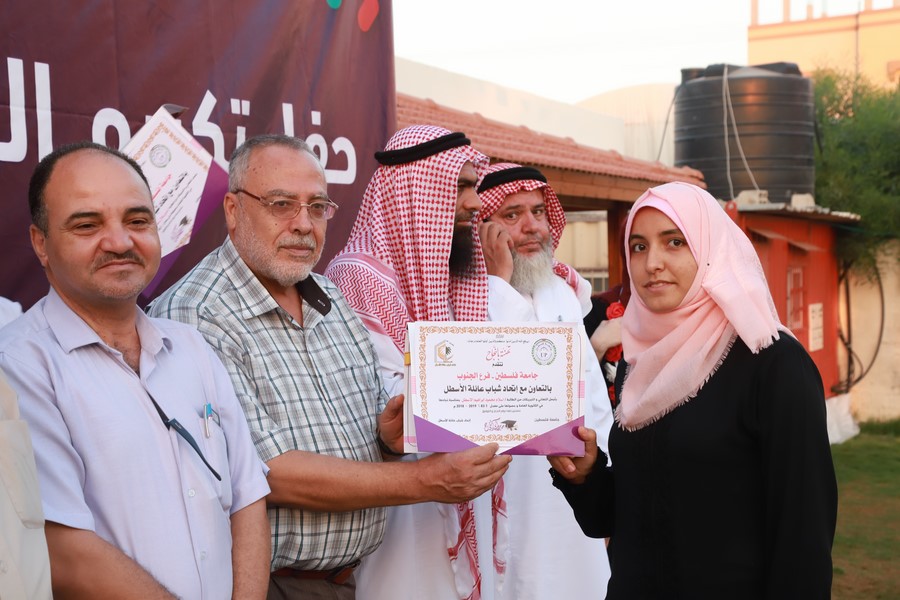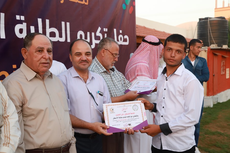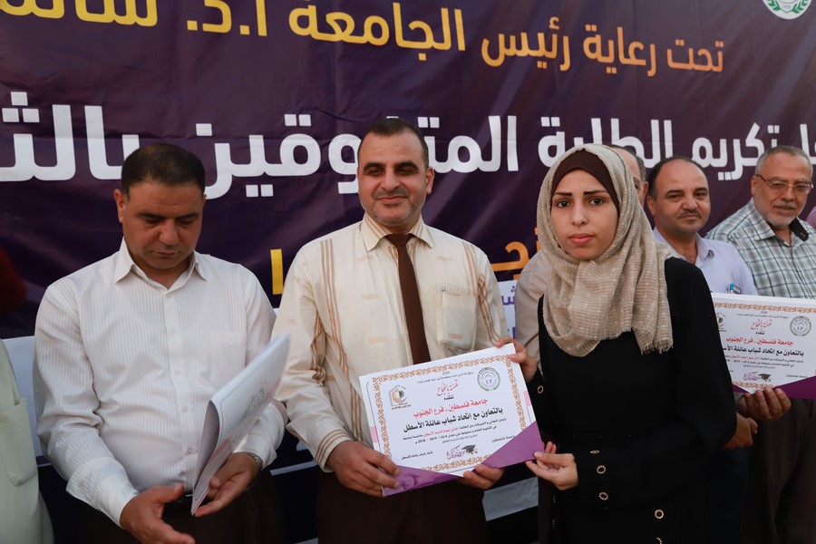 خانيونس- السطر الشرقي/ بحضور لفيف من الأعيان والوجهاء والشخصيات الاعتبارية نظم اتحاد شباب عائلة الأسطل بالتعاون مع جامعة فلسطين حفلاً مهيباً لتكريم المتفوقين والناجحين في الثانوية العامة للعام 2019 وقد بدأ الحفل بآيات من القرآن الكريم تلاها القارئ أيمن محمد الأسطل، ثم تللا ذلك فقرة دخول المكرمين إلى منصة التكريم، وقام الجميع للسلام الوطني الفلسطيني