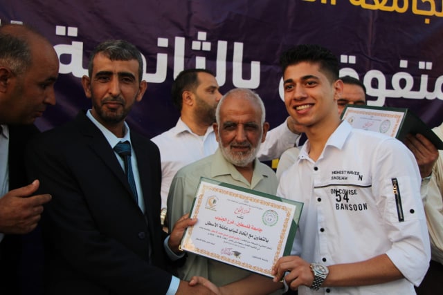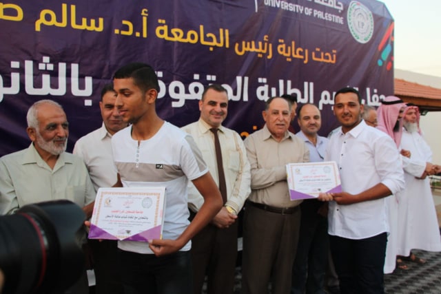 خانيونس- السطر الشرقي/ بحضور لفيف من الأعيان والوجهاء والشخصيات الاعتبارية نظم اتحاد شباب عائلة الأسطل بالتعاون مع جامعة فلسطين حفلاً مهيباً لتكريم المتفوقين والناجحين في الثانوية العامة للعام 2019 وقد بدأ الحفل بآيات من القرآن الكريم تلاها القارئ أيمن محمد الأسطل، ثم تللا ذلك فقرة دخول المكرمين إلى منصة التكريم، وقام الجميع للسلام الوطني الفلسطيني