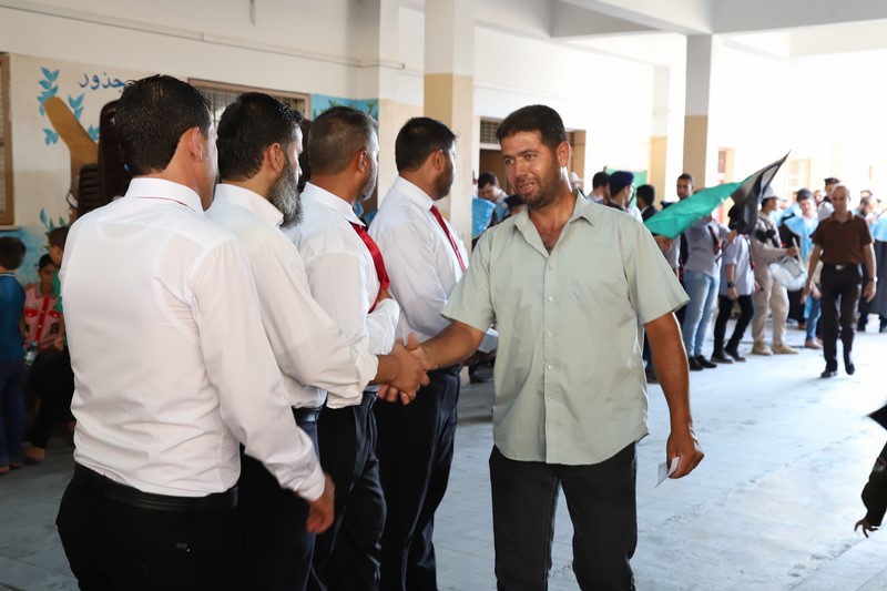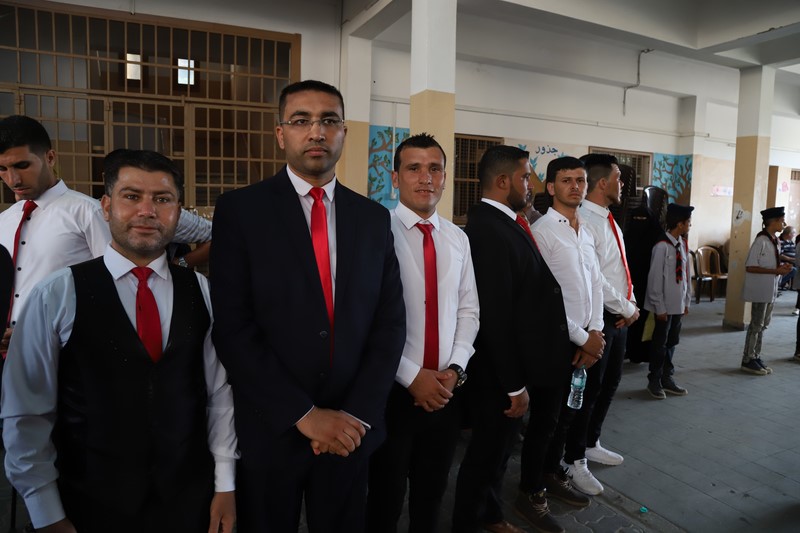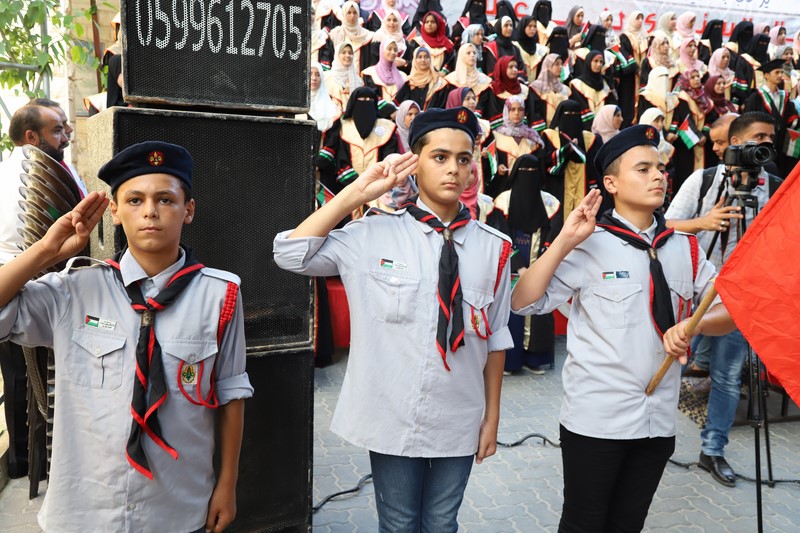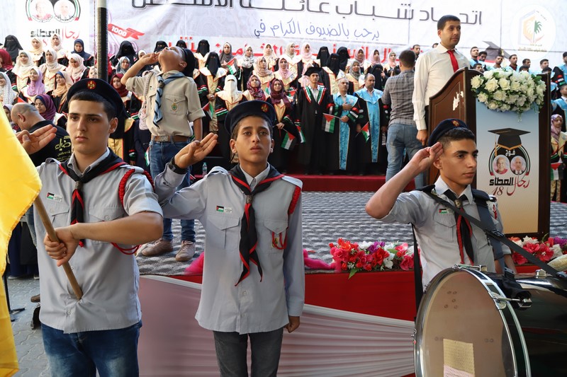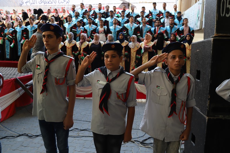 وقد دق العريف المتألق أ. مهند الأسطل جرس الحفل في الدقيقة الثلاثين بعد الخامسة عصراً مرحباً بالحضور بأسمائهم وصفاتهم الاعتبارية، مفتتحاً الاحتفال بتلاوة عطرة للقرآن الكريم مع الشيخ عبدالقادر يوسف الأسطل تلا ذلك طلة بهية للمكرمين يقدمهم الفرقة الكشفية وسط تصفيق الجماهير، تم على إثرها أداء السلام الوطني الفلسطيني.