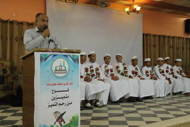 وقد ألقى كلمة المركز الأستاذ أنس الهسي مؤكداً على أهمية القرآن الكريم في حياة الأمم والشعوب والأفراد وشدد سيادته على أهمية تعليم الأطفال منذ نعومة أظفارهم كتاب الله عز وجل وعلى ضرورة الوقوف خلف مراكز تحفيظ القرآن الكريم ودعمها، من جهته ألقى الدكتور يونس الأسطل كلمة شكر للقائمين على المركز مشدداً على ان جيل القرآن هو الجيل الذي يقع على عاتقه تحرير المسجد الأقصى من دنس اليهود، وتخلل الحفل عرض مرئي عن نشاط المركز كما تم الاحتفاء بالحفظة في نهاية الاحتفال.