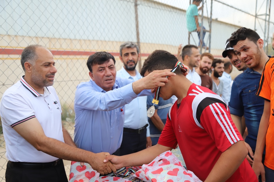 خانيونس- ملعب الأمراء/ اختتمت أمس الأحد الموافق 5-7-2020 بطولة ملعب الأمراء لكرت القدم وقد جمعت المباراة النهائية بين فريقي المرحوم حاتم سالم الأسطل والشهيد عبد الله الفرا، وقد توج فريق المرحوم حاتم سالم الأسطل بطلاً لبطولة ملعب الأمراء بعد فوزه على فريق الشهيد عبدالله الفرا بهدف مقابل لا شيء، وكان الفريقان قد تأهلا للمباراة النهائية بعد فوزهما على العديد من الفرق الرياضية، وقد شارك في البطولة ثمانية فرق رياضية، من ضمنها الفرقان المذكوران، هذ وقد سادت الروح الرياضية العالية بين اللاعبين.