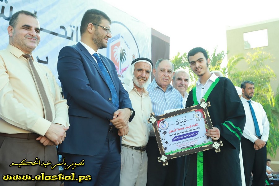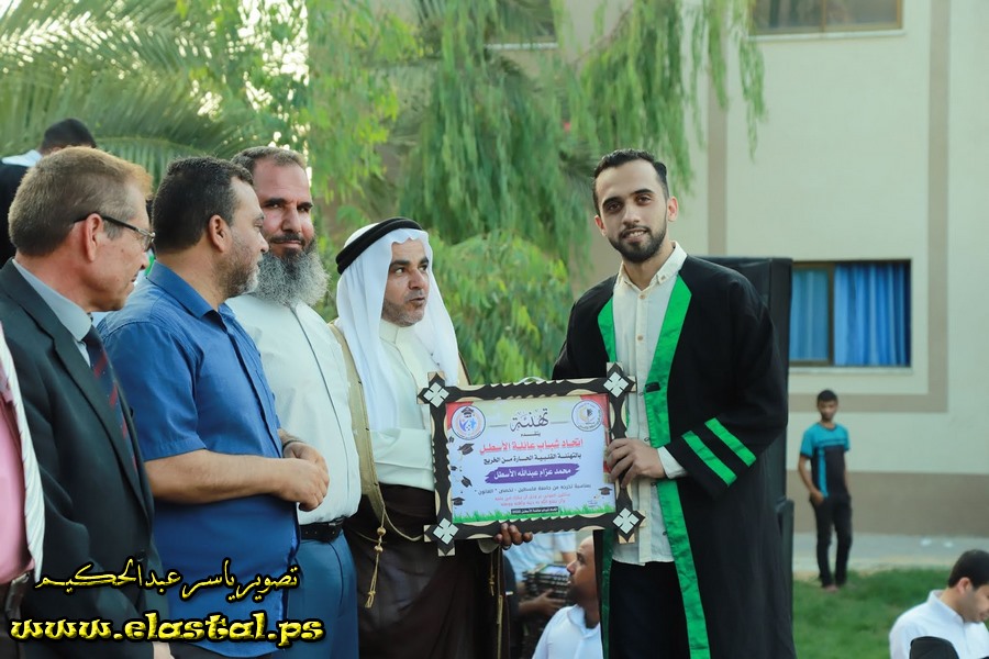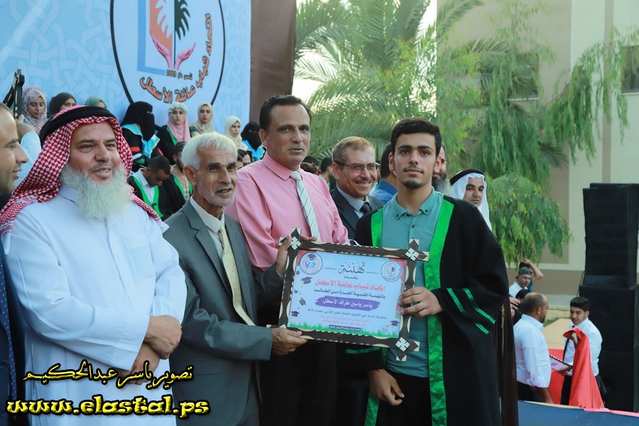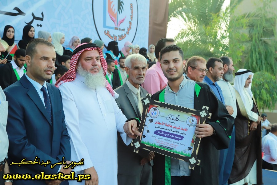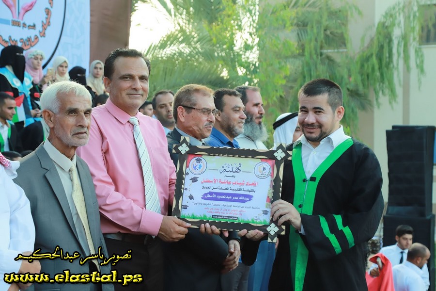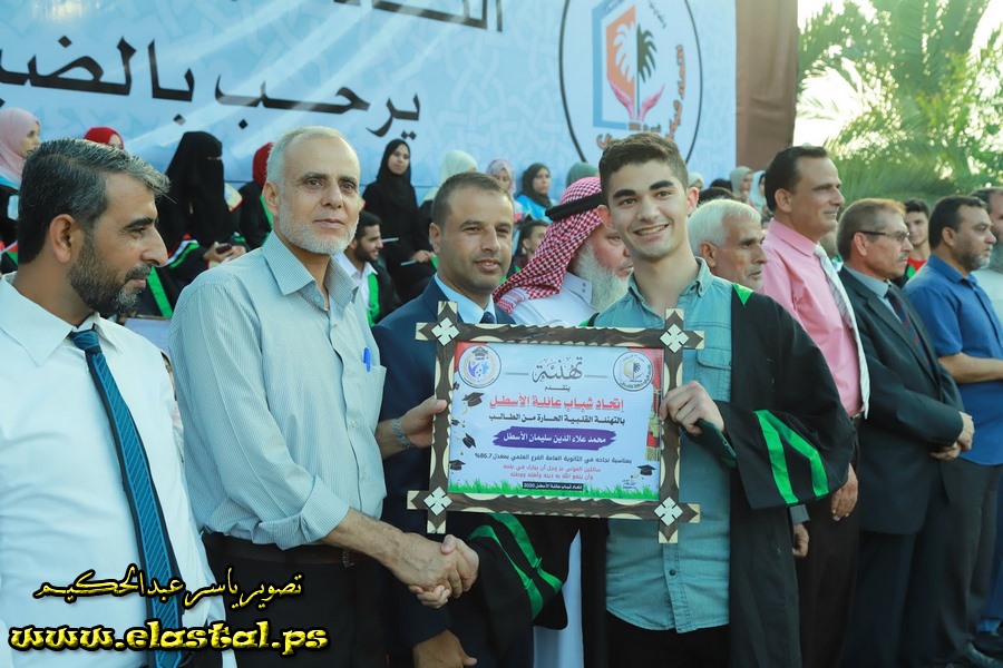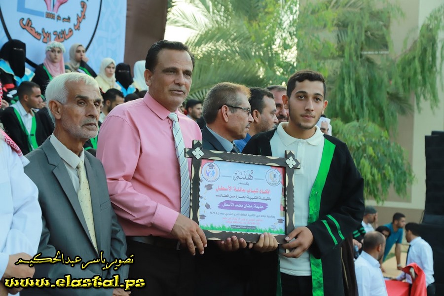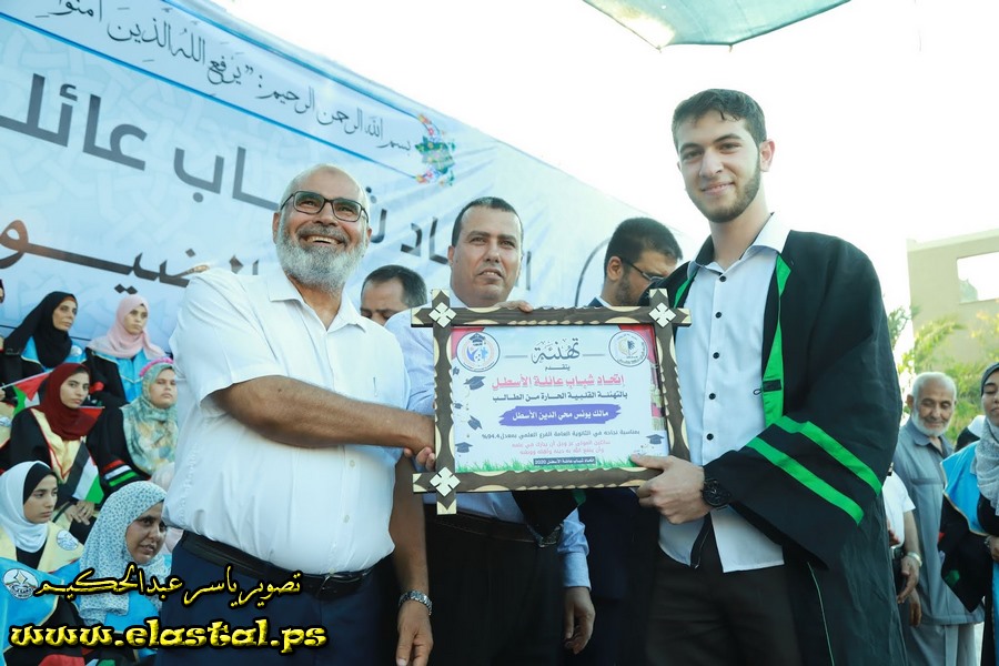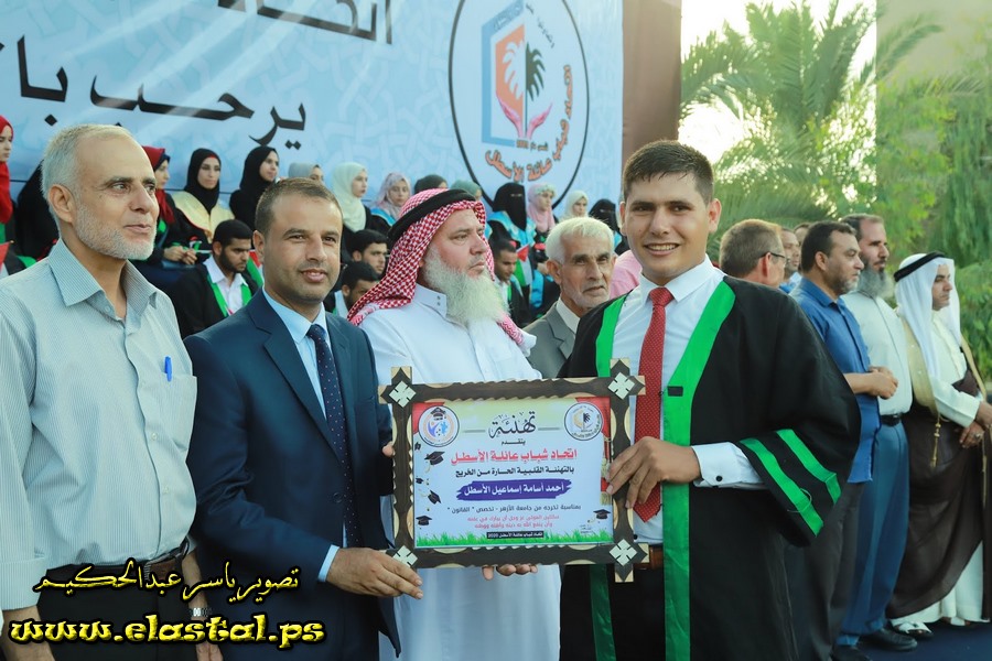 خان يونس- جامعة غزة / في حفل جماهيري مهيب وبحضور لفيف كبير من الأكاديميين والمدراء والوجهاء والأعيان تقدمهم د. يوسف أبو الريش وكيل وزارة الصحة، وعضو لجنة المتابعة الحكومية العليا ورئيس بلدية خان يونس م. علاء الدين البطة قام اتحاد شباب عائلة الأسطل بتكريم ثلة مباركة من أبناء العائلة من حملة الشهادات العليا والمتوسطة والمتفوقين في الثانوية العامة، وذلك ضمن فعاليات الاحتفال السنوي التاسع عشر للعائلة والذي يقيمه الاتحاد كل عام.