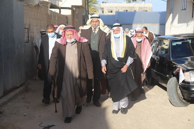 خانيونس- السطر الغربي: استقبلت عائلة الأسطل عصر الأربعاء الموافق 3/2/ 2021م وفداً من الوجهاء والمخاتير ورجال الاصلاح وأعضاء المجلس التشريعي على رأسهم رئيس رابطة علماء فلسطين أ.د ماهر الحولي والنائب د. سالم سلامه رئيس دائرة الإفتاء في رابطة علماء فلسطين وعضو المجلس التشريعي والدكتور علاء الدين العكلوك رئيس شئون العشائر والإصلاح والعديد من الوجهاء والمخاتير من قطاعنا الحبيب وذلك بتكليف من آل راضي علي أثر الحادث السير المؤسف والذى أصيب علي أثره اثنان من أبناء العائلة ودخول أحدهم للعناية المكتفة بمستشفى ناصر الطبي وكان في استقبالهم العديد من وجهاء وكبار العائلة