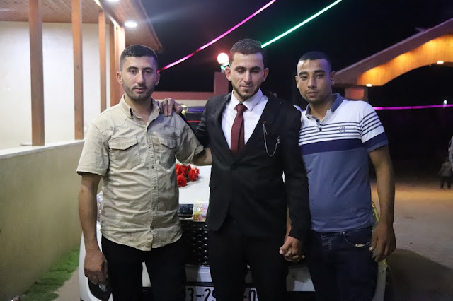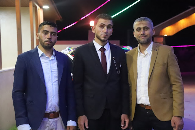 خان يونس/ السطر الشرقي : تم بحمد الله تعالى زواج السيد الفاضل : عبدالله عثمان علي "دعبس" الأسطل، على صاحبة الصون والعفاف الآنسة : ولاء نبيل الفرا
