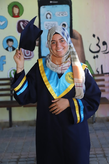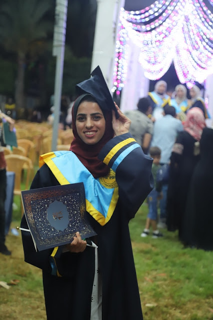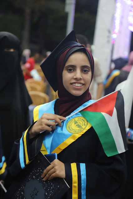 أما الطالبة المتفوقة نهاد حسام الأسطل فقد شكرت الكلية على استضافتها للاحتفال واتحاد شباب العائلة على تنظيمه وتقدمت بالشكر الجزيل لراعي العملية التعليمية  والمدرسين والآباء الذين واصلوا الليل والنهار من أجل تهيئة الأجواء لراحة أبنائهم حتى يستطيعوا أن يواصلوا مسيرتهم التعليمية ،