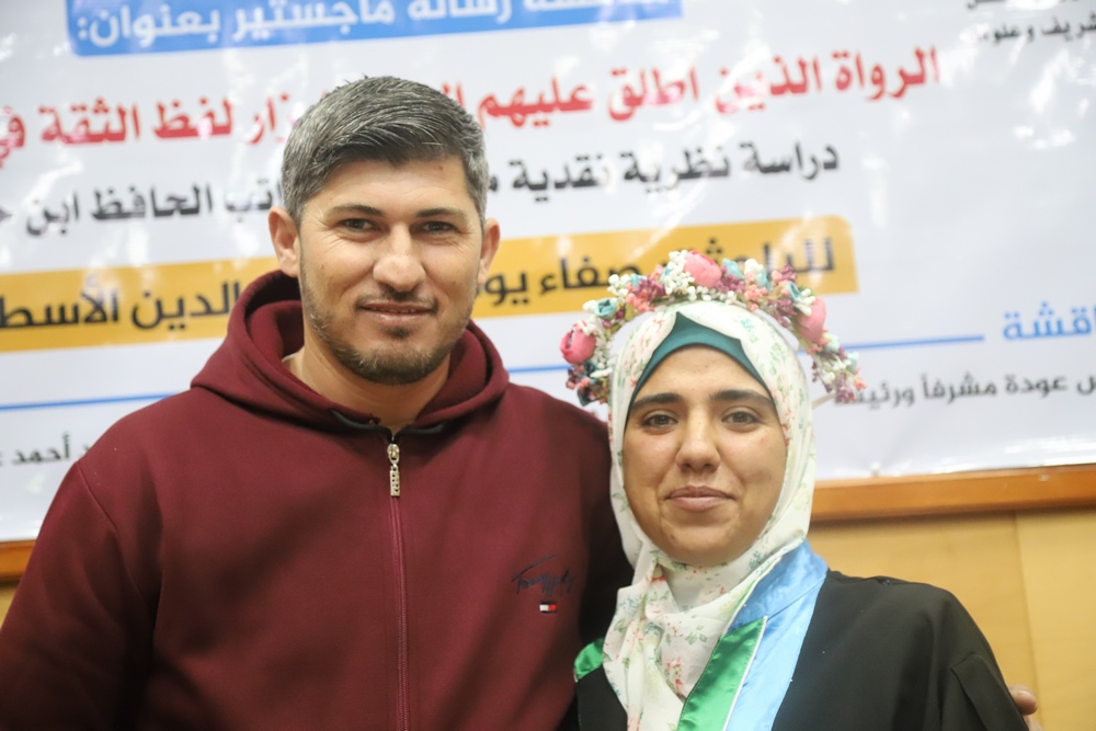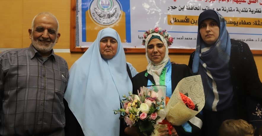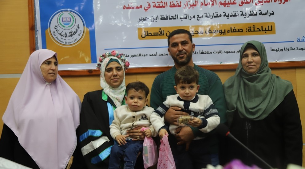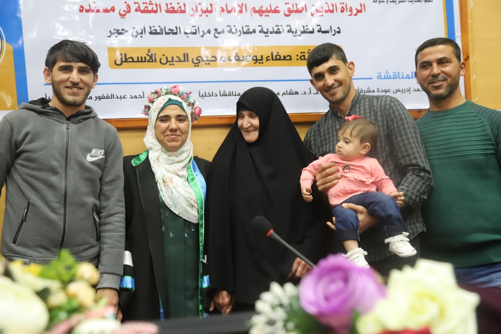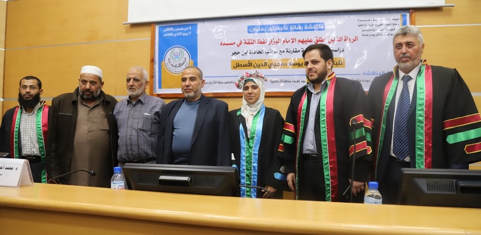 الجامعة الإسلامية/ خانيونس: بفضل الله وتوفيقه حصلت الباحثة الفاضلة/ أ. صفاء يوسف محيي الدين "فايز" الأسطل على درجة الماجستير في الحديث الشريف من الجامعة االإسلامية، وذلك يوم الأربعاء الموافق 4/12/2019م وقد كانت رسالتها بعنوان